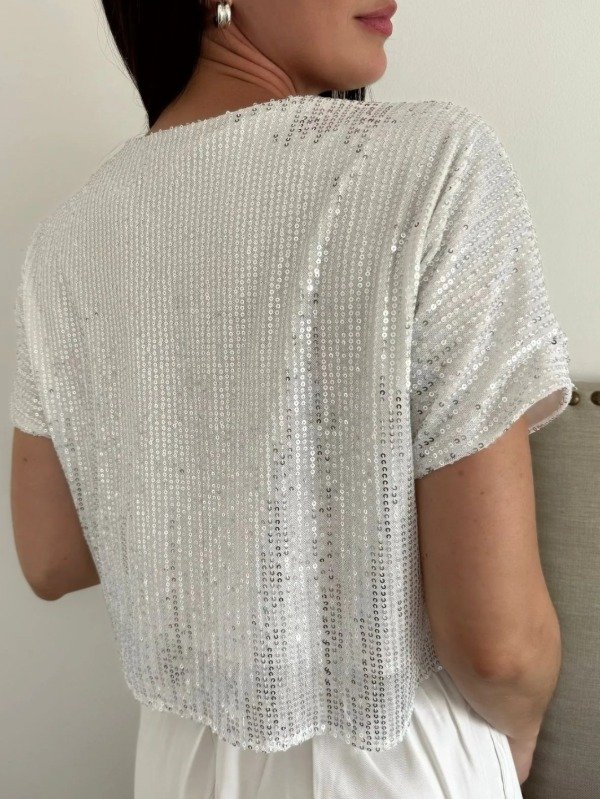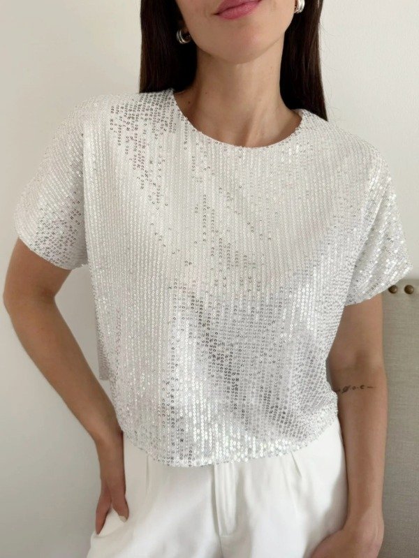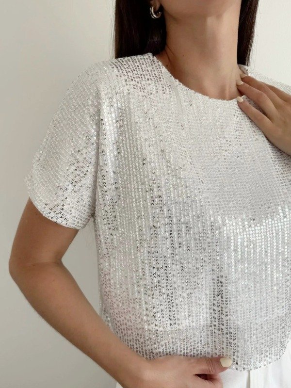 Remera croop cuello redondo con mangas ,confeccionado en paillette con forreria interna.