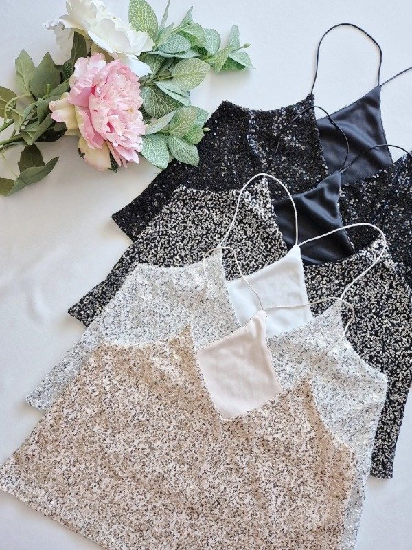 Top escote v con breteles de raso confeccionado en paillette con forreria interna
