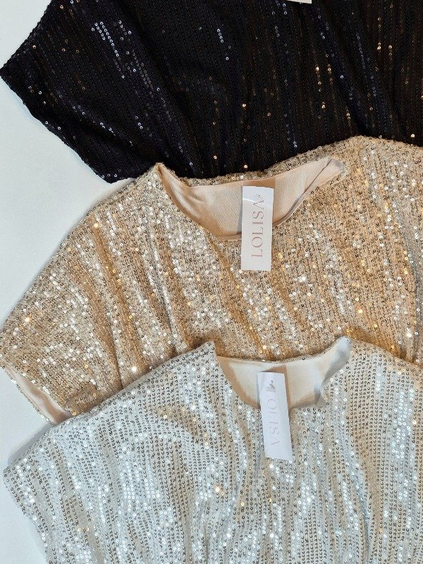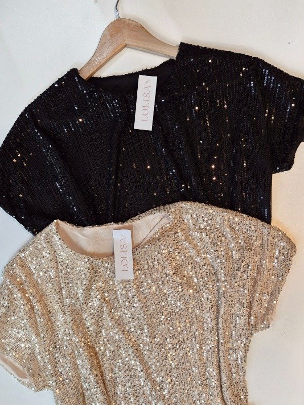 Remera croop cuello redondo con mangas ,confeccionado en paillette con forreria interna.