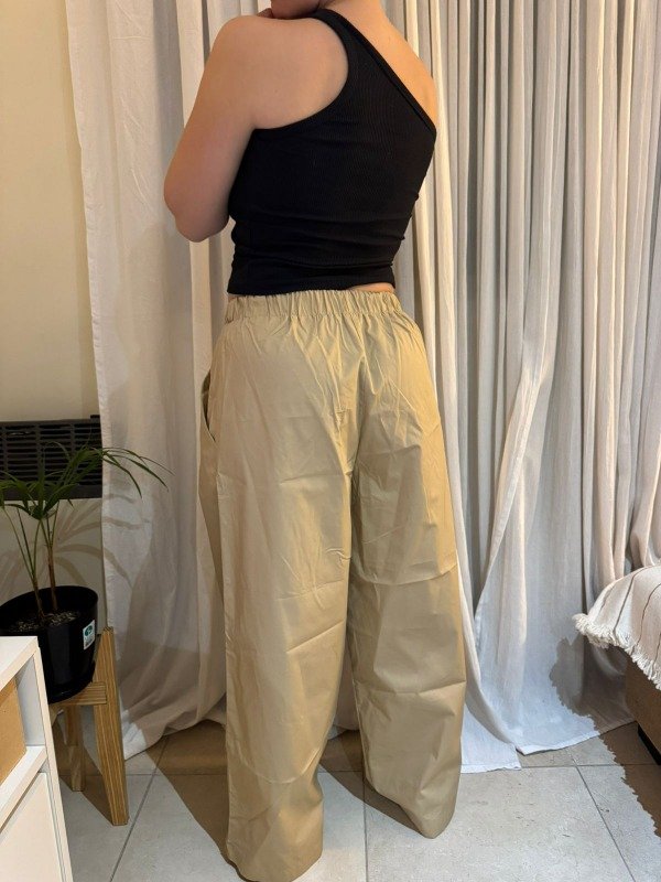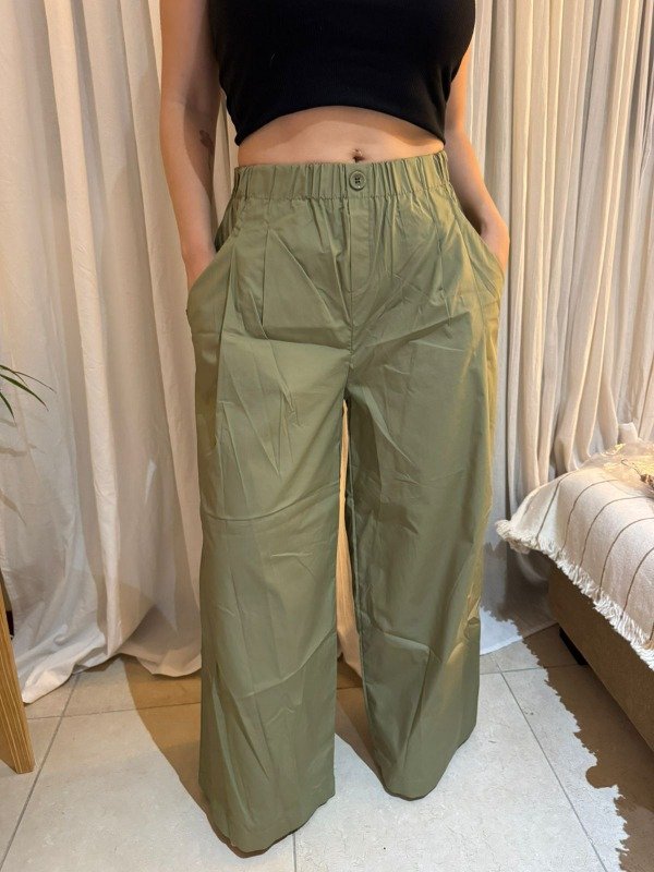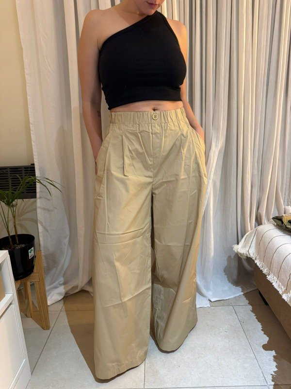 Pantalón sastrero de poplin con pinzas y elastico en cintura.