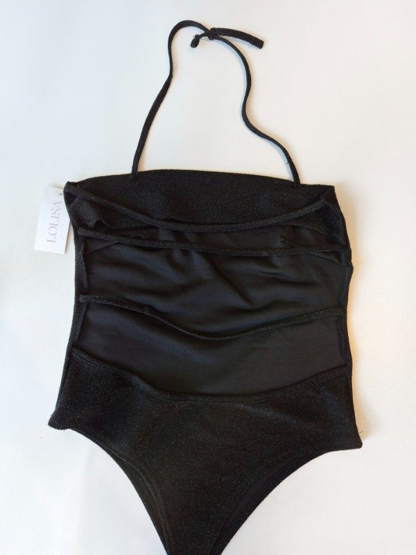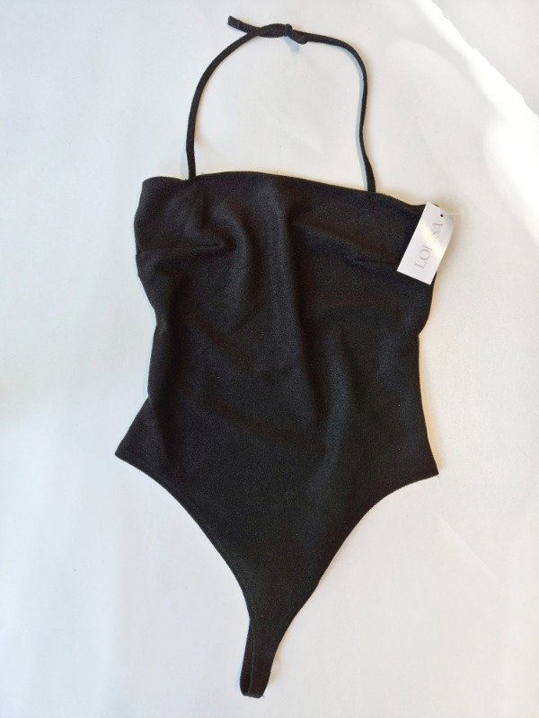 Body entero con escote recto y espalda descubierta con lazos finos.