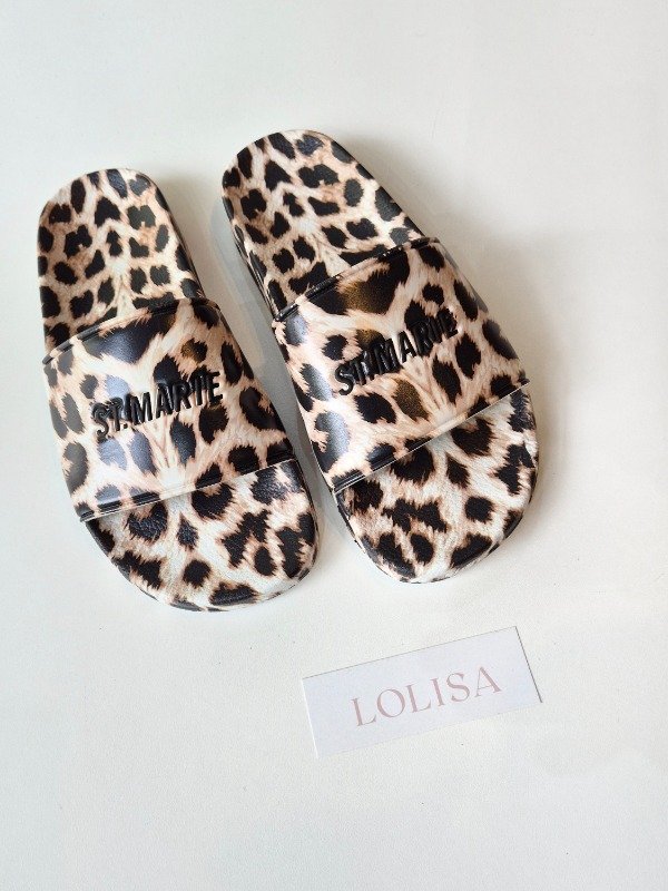 Ojotas estampadas con marca bordada en relieve y base de caucho.