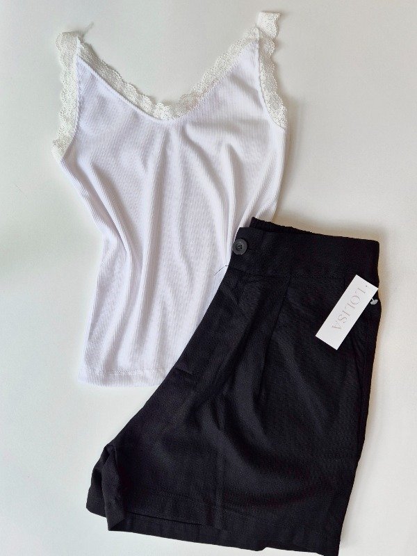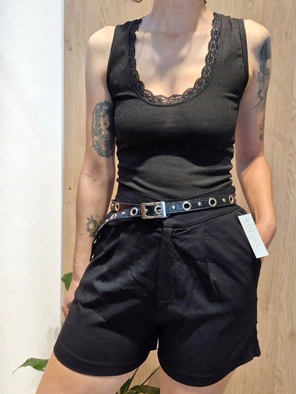 Short sastrero con botones y bolsillos.Con elastico en la cintura ,parte trasera.
