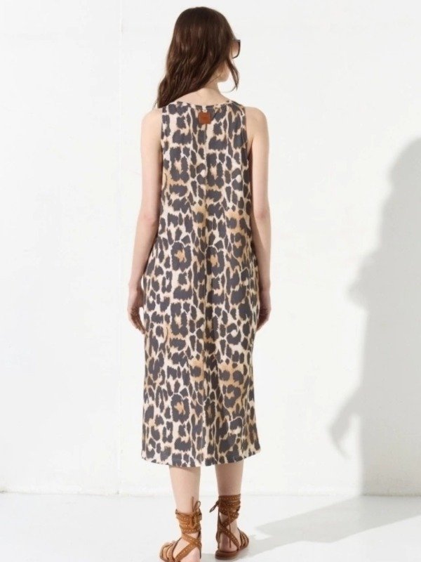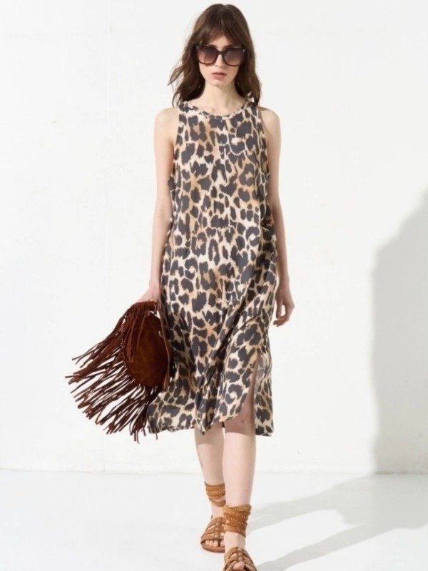 Vestido midi con bolsillos y tajitos laterales.