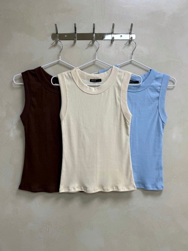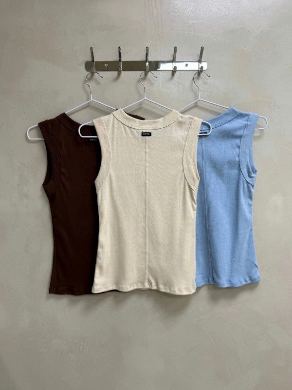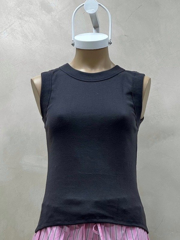 Musculosa cuello redondo. Con sisas y escote anchos. Detalle de costura en centro espalda. Confeccionada en jersey de algodón.