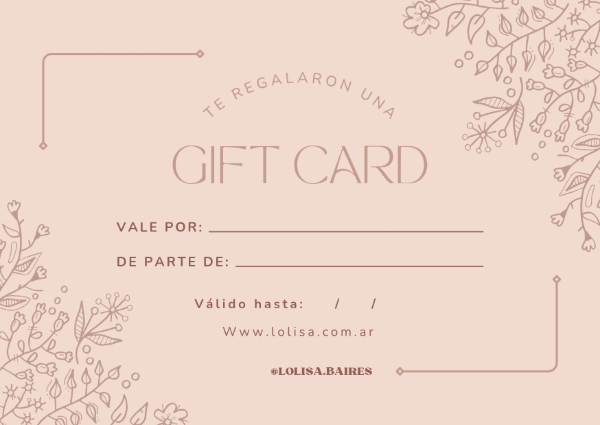 REGALA UNA GIFT CARD DE LOLISA Y LO PUEDEN CANJEAR VINIENDO AL LOCAL O SI SOS DEL INTERIOR COMUNICATE CON NOSOTROS POR PRIVADO Y TE ENVIAMOS EL CODIGO PARA QUE PUEDAS UTILIZARLO.