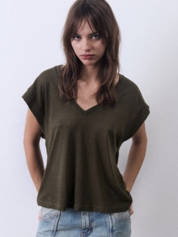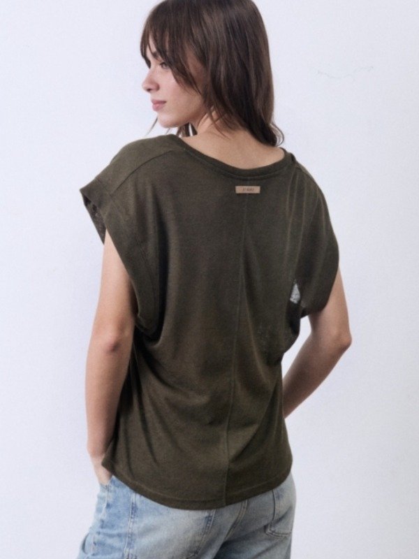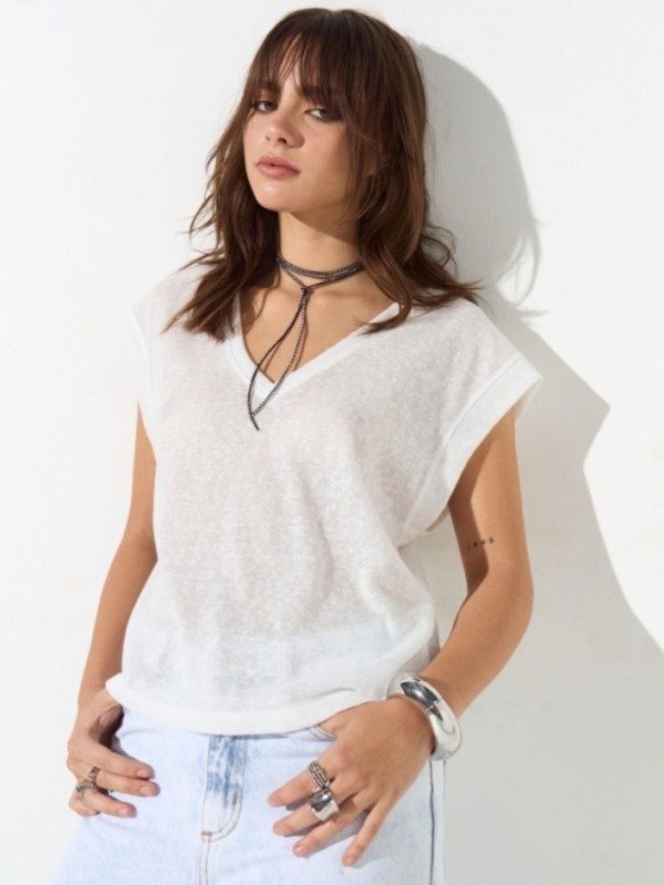 Remera sin mangas con breteles anchos , escote en v profundo.