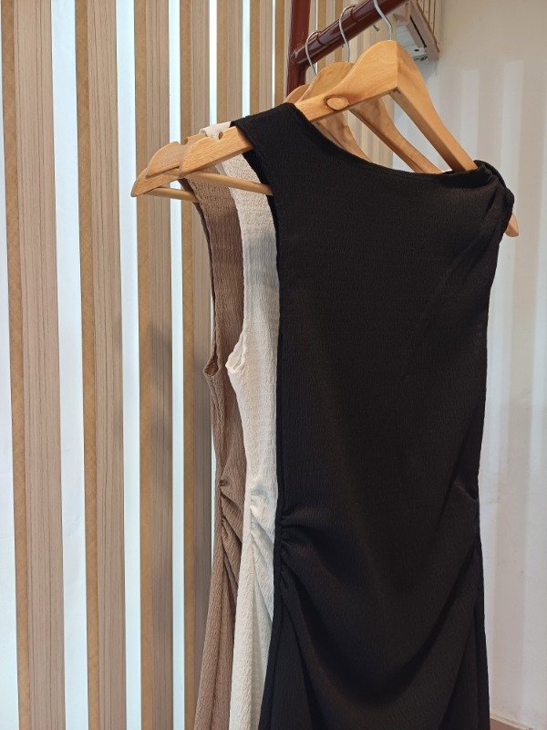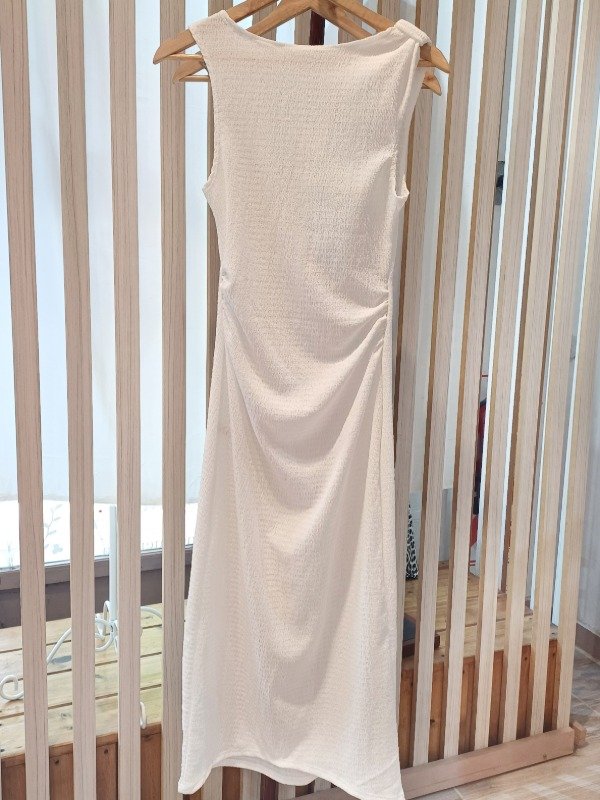 Vestido largo confeccionado en bambula, con detalle de elástico en delantero para generar un frunce a la altura de la cintura.Talle unico.Color: BLANCO-NEGRO-LATE